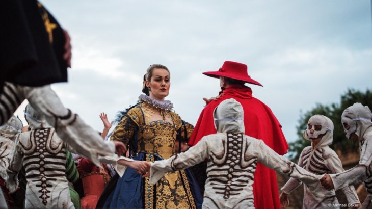 A danse macabre, or ‘dance of death’, was given by performers dressed as skeletons who again engaged with the audience. This dance was to emphasise the universality of death and the idea of death as a leveller – typically showing a personification of death leading people from all walks of life towards the grave. (See 37.45 minutes into the video above.)