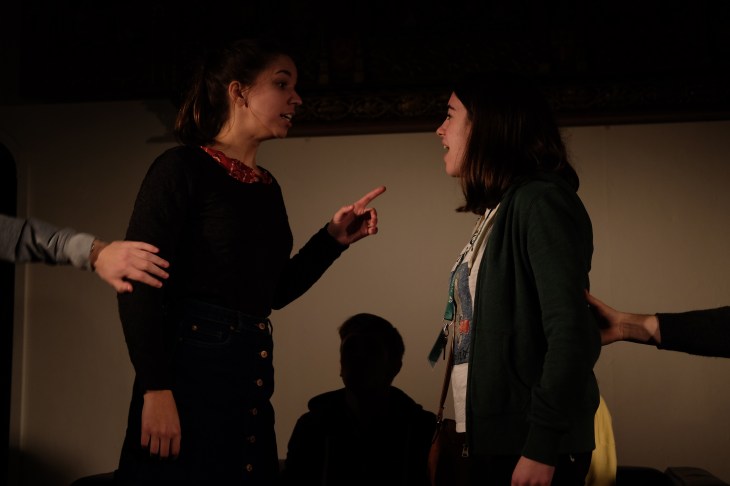 Although the main feeling I took away from the play was joy at the comedic elements, having thought about it more I realised that there were serious debates around ‘family circles’ going on within the play. The largest point seemed to be that marriage rarely works. The only stable relationship is that of the parents Emma and Edward, played incredibly by Sarah Taylor and Henry Nicoll, and they were definitely not in a happy marriage. The switching of partners across the play shows that, with every girl-guy combination tried, no pairing is entirely happy, if at all. Although, as Gabbie Sills marks in the director’s note, the question of whether any of the couples worked is fully down to our interpretation. Nonetheless, by the play’s conclusion, we were all convinced by the familiarity the acting and setting produces and by the invalidity of each of the relationship within the play, that if one of the character’s murdered the other even after thirty years of marriage, that this would make sense. After all, that’s how relationships work… isn’t it?