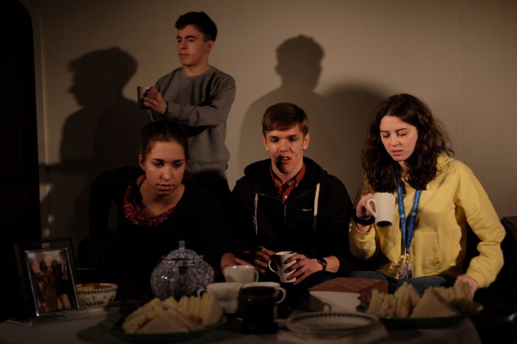 In this sense, the play was complete success. The incredible acting and well-timed physical comedy kept the audience constantly laughing and, as I mentioned, the setting was intimate in a way that worked well with the play’s theme. Every character was well-formed by the actor meaning that the confusion intentionally caused by the swapping of partners between scenes was not so bewildering that we lost the plot of the play. Each sister dates (or is married to) a different one of the three male characters in each scene; it was complicated, but shows how well-rehearsed the cast was so that these changes were fluid enough to make sense. Furthermore, it demonstrated the play’s point: the confusion and ultimate futility of trying to comprehend what family means or looks like.