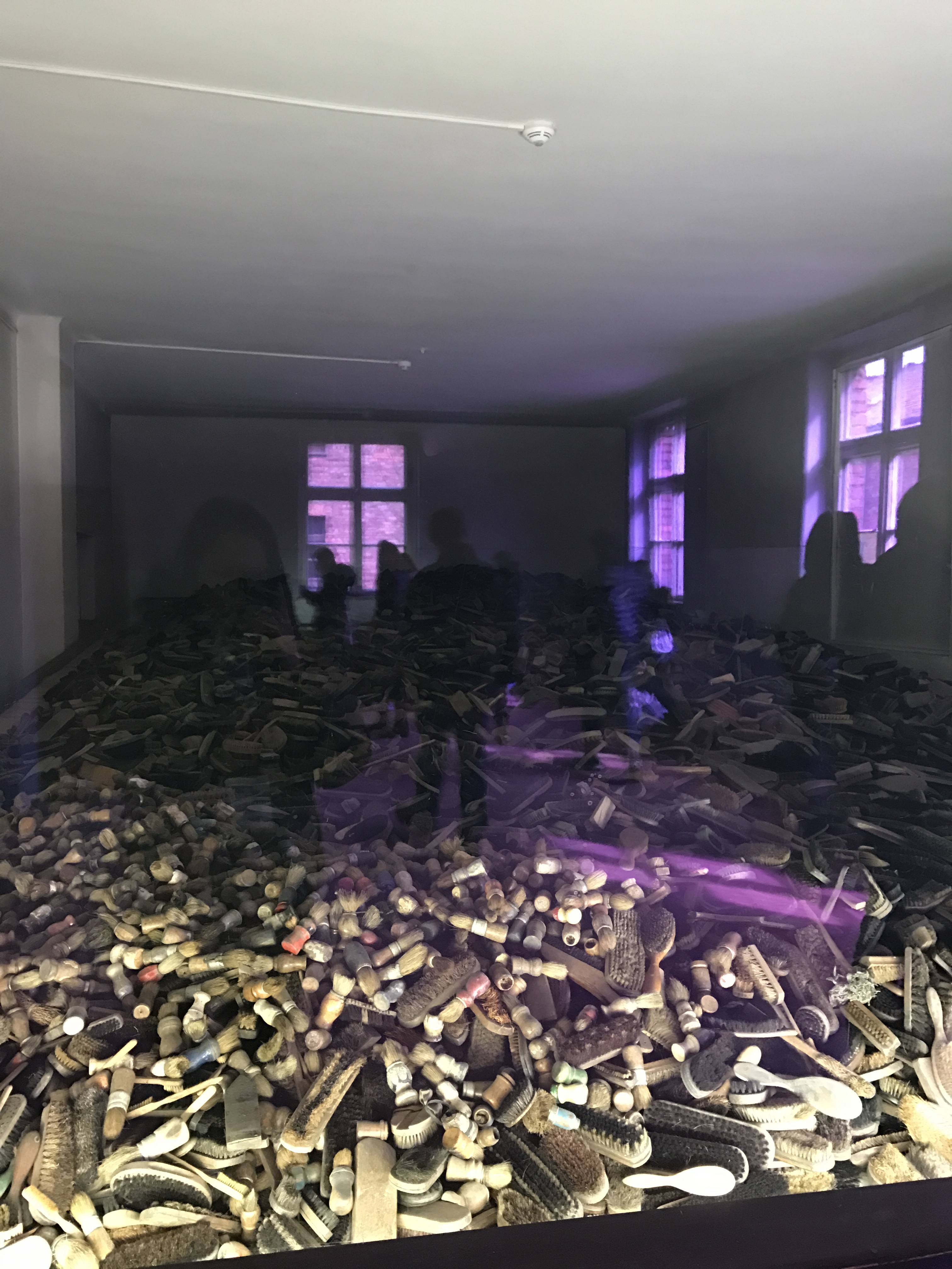 We began the day at Auschwitz I, where the statistics of the Holocaust stopped being numbers to me and became people. Seeing a room full of hair, clothes, shoes, glasses, photographs, it was impossible not to think about each individual, to compare them to ourselves, or to members of our families. The museum at Auschwitz I breaks down the well-known statistic of six million deaths into six million individuals who had dreams, hobbies and lives. I think we all left the camp feeling a bit unsure of how to respond and process this information.