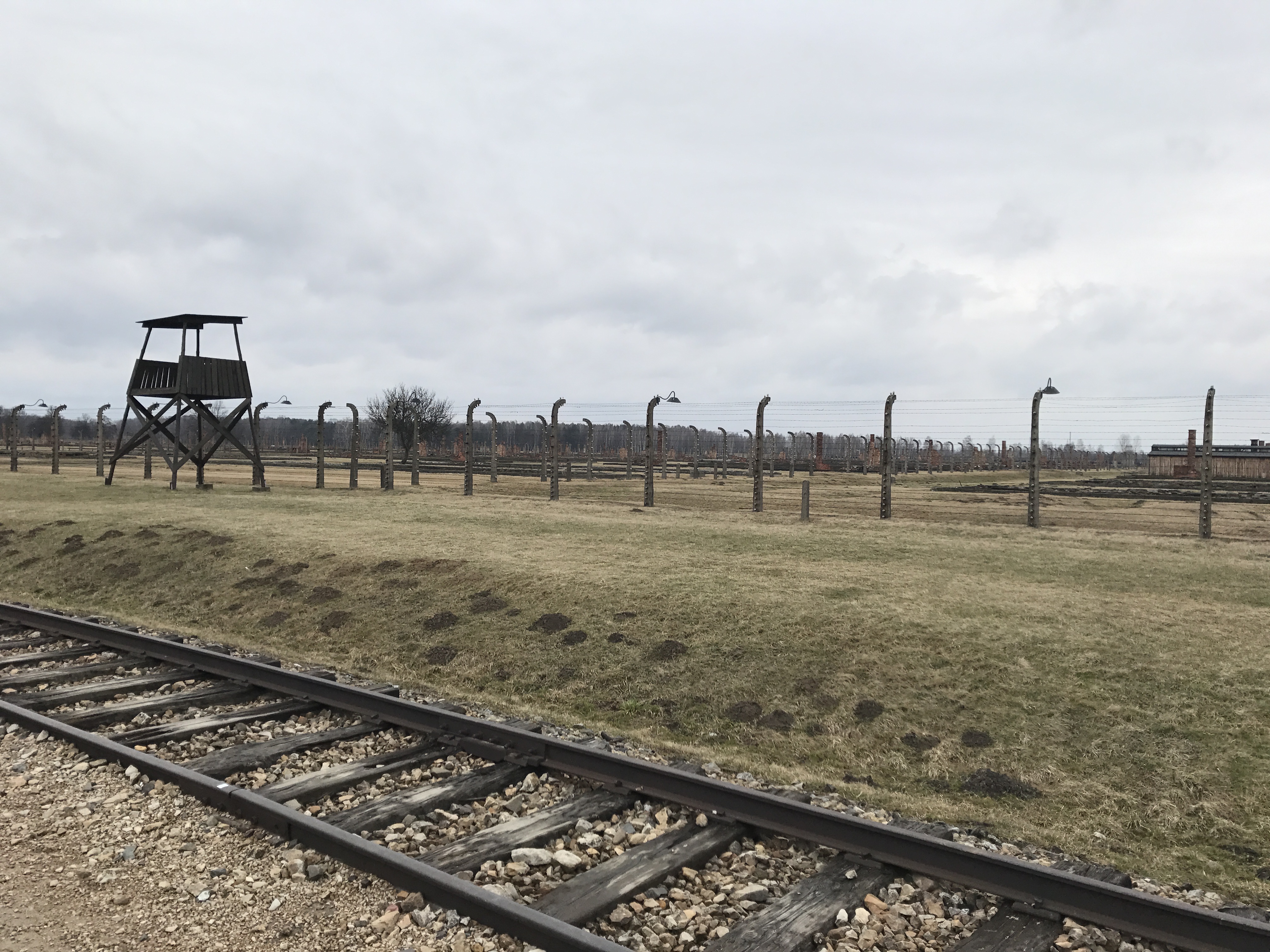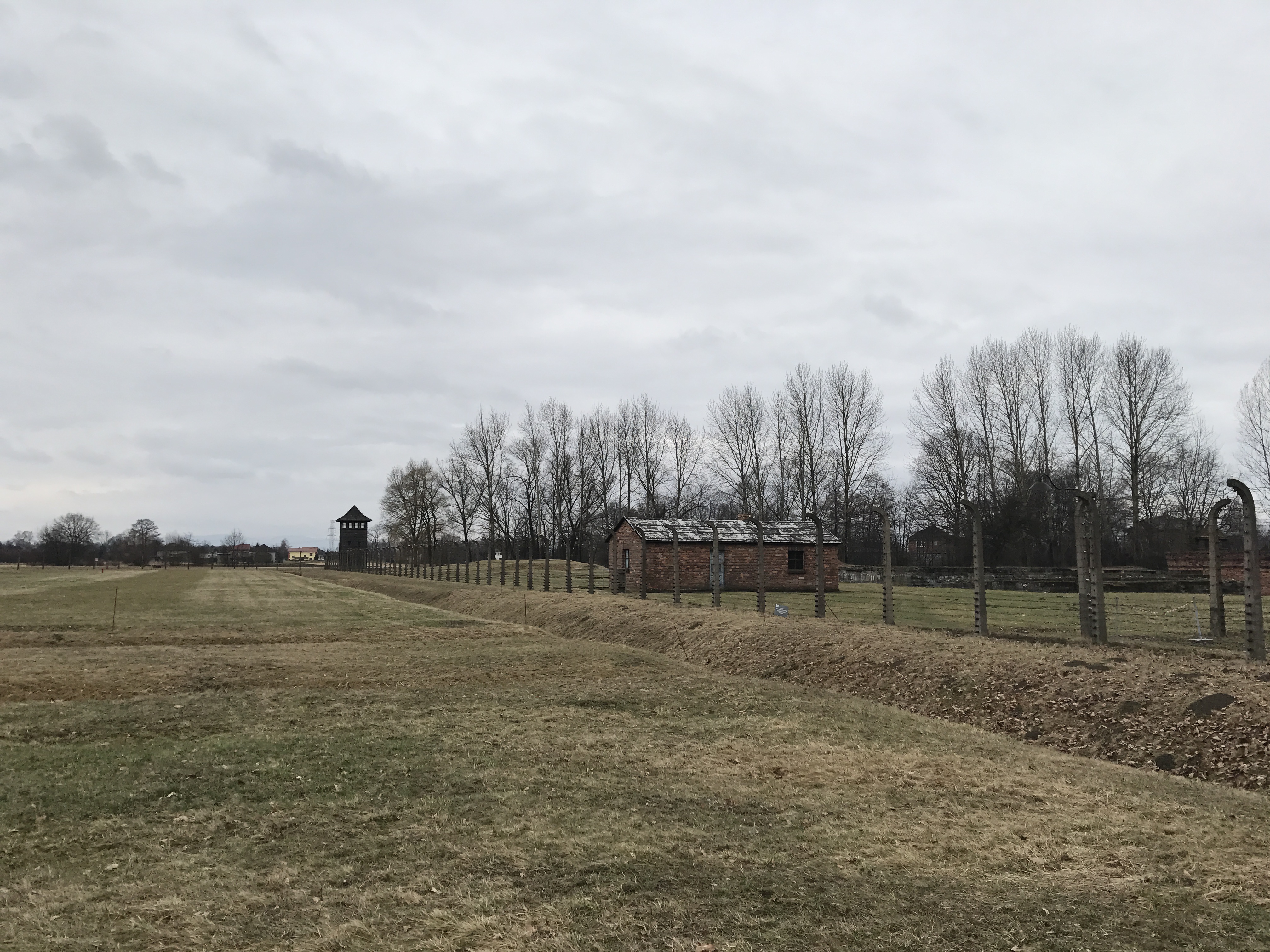 We then travelled to Auschwitz II Birkenau – this camp is huge, and its size really shows the scale of the murder. When we arrived at the camp, there was an Israeli school group singing and dancing at the entrance. This came as quite a shock to me after the relative silence of the first camp, and I found it difficult to understand why anyone would want to be anything but silent in a place that was so harrowing. Afterwards a Jewish member of our group explained why the school group acted in the way that they did. It was a useful reminder that everyone responds to these spaces differently and that there’s no ‘right’ way to do so.