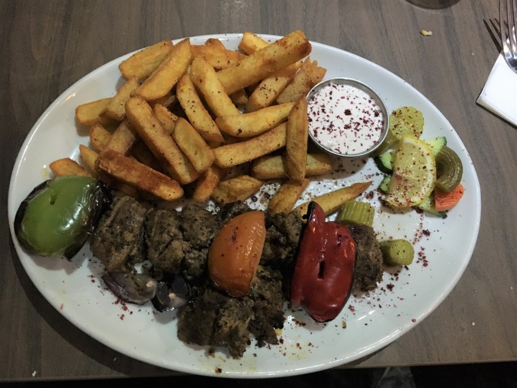 For my main course, I ordered the Lahem Meshwi, which were succulently chargrilled skewers of tender lamb chunks, served with appropriately crunchy chips and unfortunately unremarkable grilled vegetables. Therefore, although Lebaneat is pricy, especially on a student budget, with starters averaging five pounds and mains averaging twelve pounds, I would definitely recommend it for a deep dive into the Middle East.