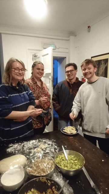 The Lantern Festival at John’s brought together a number of Johnians from many rooms: JCR, MCR and even SCR. Since the event was in collaboration with the International Representatives of the SJCR, a wide number of activities enlightened the event. These included preparing and tasting of (a lot of) delicious dumplings — undoubtedly the most successful part of our Festival with our lovely Head Chef Ming (a huge thank you!) teaching us the best technique to wrap the dumplings.