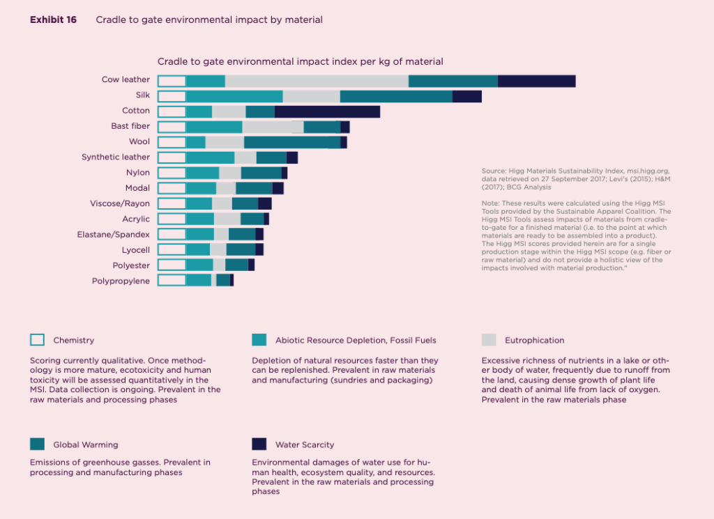 Furthermore, due to synthetic leather generally being poorer quality and having a much shorter wear-period, it can be more economically viable to purchase good quality leather shoes as opposed to poorer quality synthetic shoes, which will need to be repeatedly replaced. Though biodegradable vegan leather options are promising, and will hopefully become the norm, they are not commercially viable at this point. On the other hand, conventional leather involves not only the unnecessary slaughter of an innocent animal, but a commercial tanning process which is often just as environmentally damaging as synthetic fibres. As the Pulse of the Fashion Industry Report has communicated, cow’s leather has the greatest environmental impact per kg of material; whilst synthetic leather is lower quality and likely damaging to marine life, it does not bolster the highly destructive meat and dairy industries or have as great of a direct environmental impact upon production.