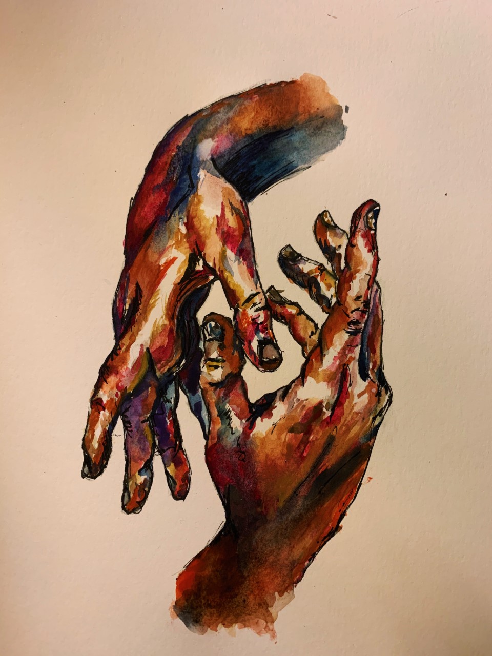 “I am not very good at stopping to take time off but one day I dedicated a day completely off to relax and be creative. Covid has been hard for all of us for many reasons but one we all share is the feeling of the unknown- not knowing if we will be affected, how and when will this all be over. For me, this also came with the added uncertainty of how the job market will look once I graduate at the end of this academic year. As a way of relaxing though, I did this sketch of a hand writing the Arabic word ‘Maktub’ which means ‘it is written’ (a reference to destiny) which was a helpful reminder to myself to keep being hopeful and patient about the future despite all the uncertainties. “