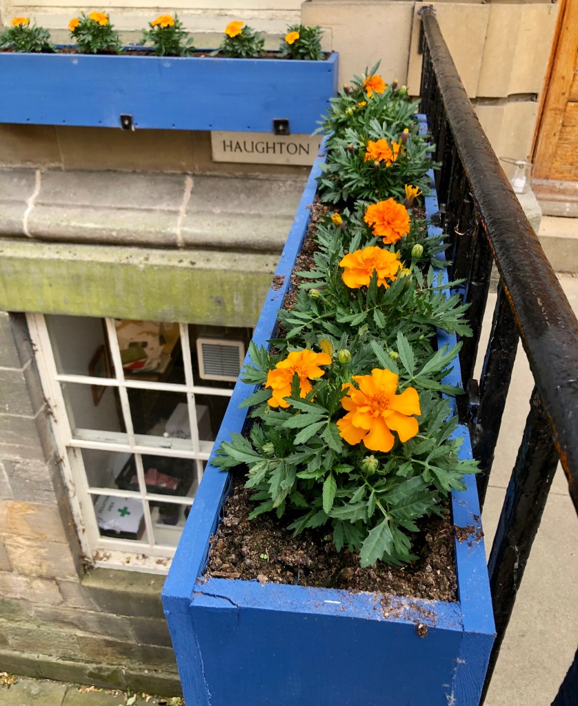 …as mentioned 5 weeks ago: the marigolds in the blue boxes at St John’s front door are in full bloom as term ends. They proclaim a joyful farewell to our leavers, a warm welcome for all our summer visitors and a bright hope for next year at John’s.