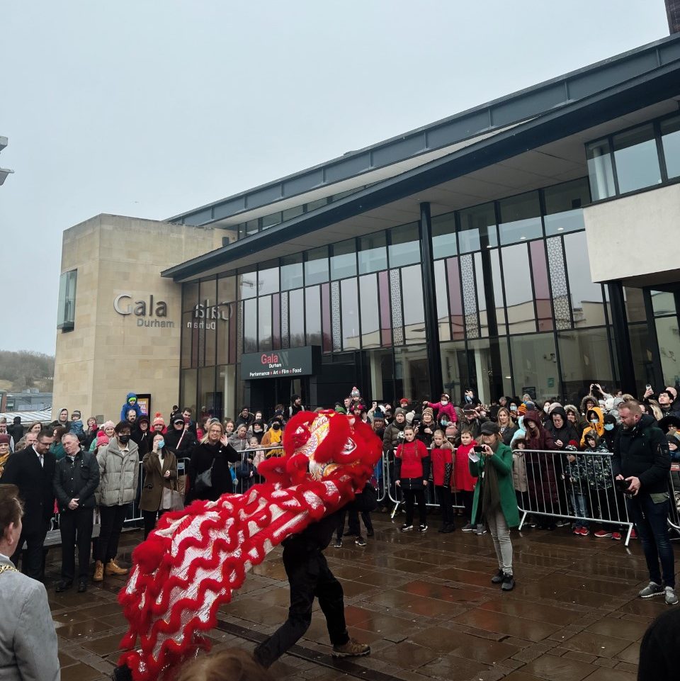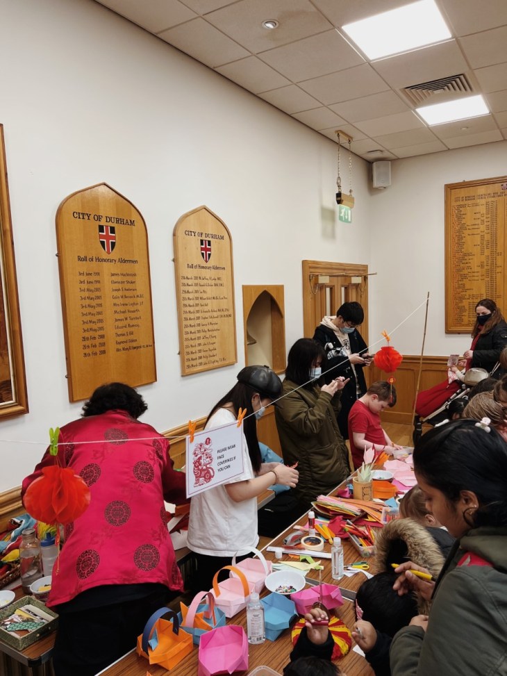 The morning of the celebrations I strolled down the Bailey, eager to reach the festivities early, when I was overwhelmed by a sight in the distance: the Durham Town Square was overflowed with a fleet of townspeople, all queuing up to attend the Town Hall’s events. Bewildered and flustered by the queuing traffic, I made my way to the less crowded Clayport Library, where my brief first stop would be a Chinese language taster session hosted by Durham University students. Conversing with a lovely student volunteer who found my dazed expression quite amusing, she eagerly explained how they were running a volunteer program on public education. The taste session taught visitors the twelve zodiac animals that represent each year of the lunar calendar. Near the end of our pleasant conversation, prominent ‘oohs’ and ‘aahs’ could be heard from the gathered townspeople outside. Curious, I said my goodbyes and wandered out of the library to discover what event was next in store.