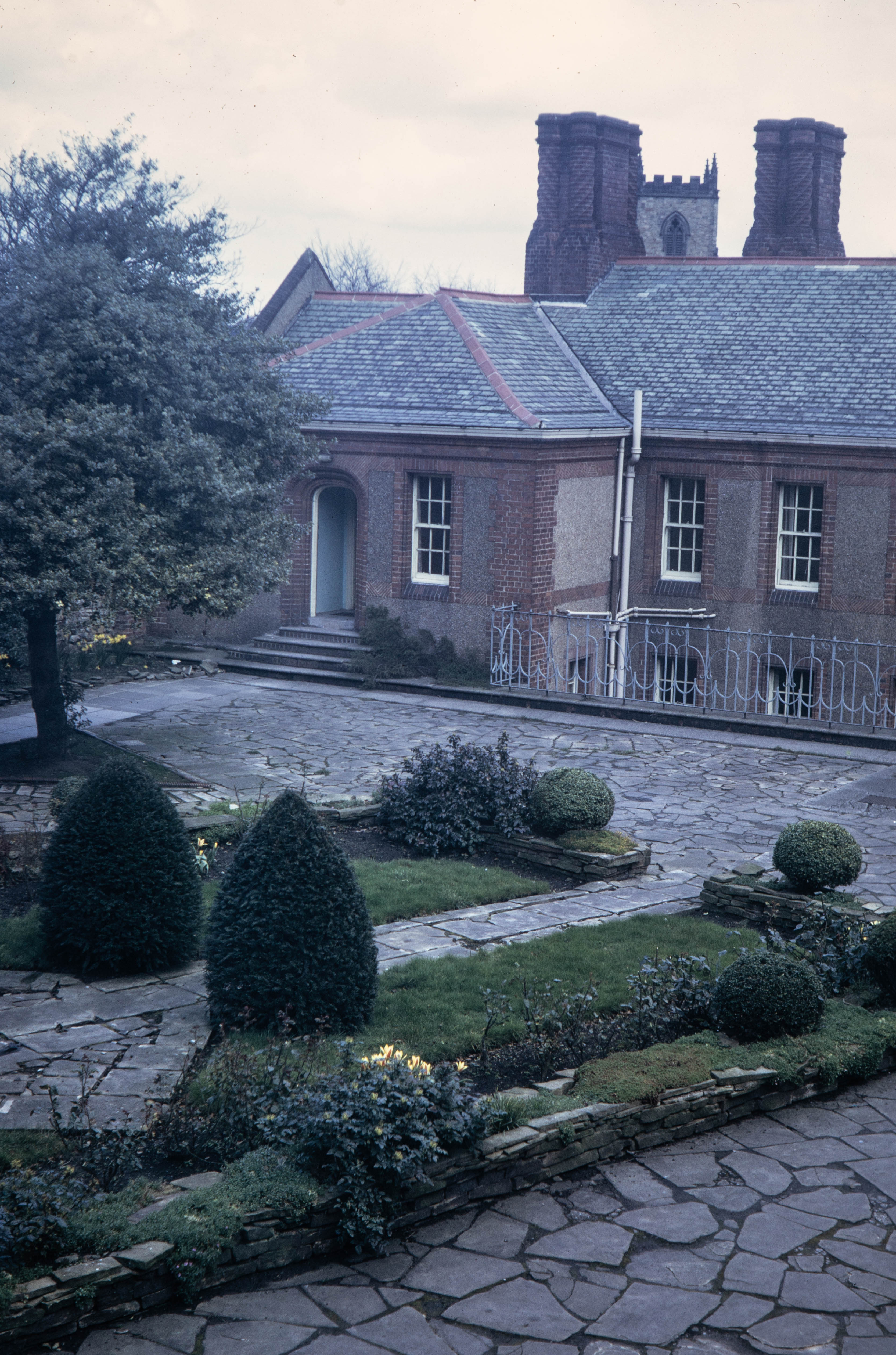 The visit took place on 17 July 1975. It included a presentation of staff; a visit to Bowes House and a visit to the Chapel to see the Bowes Hatchment and window. We see in the Kodachrome images Queen Elizabeth The Queen Mother being accompanied by John and Diana Cockerton while walking around college grounds.