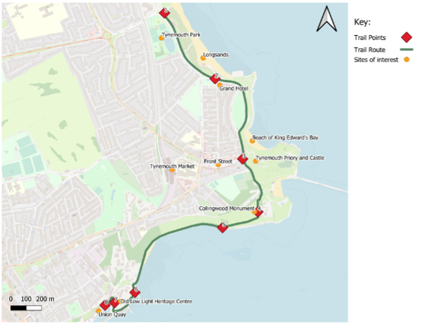 I also provided a map with which attendees could follow a self-guided walking tour from Tynemouth to North Shields. Through this trail, I sought to illuminate the intertwining but contrasting histories of each town, and explore why Tynemouth emerged as a desirable holiday destination with stylish restaurants, hotels and gift shops, while North Shields has suffered much more heavily from deindustrialisation and is now being rapidly transformed by a surge of regeneration projects. A group of friends and I followed the tour and I enjoyed hearing their thoughts on the contested role of heritage. For example, how it serves to promote historic areas and attract investment, while simultaneously promoting gentrification and marginalising original working-class communities.