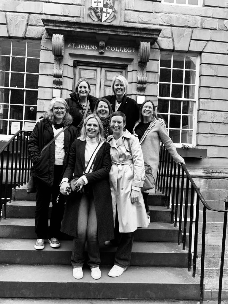 Towards the end of April this year, we had the privilege of welcoming a group of John’s alumni back to St John’s for a visit. Charlotte Barnes (née Buckley), Janine Broome, Lara Robinson (née McMahon), Anna Fisher, Sally Woods (née Armiger) and Helena Green were all at John’s together 1993-96, where they became lifelong friends. Our SJCR president, Thomas Jackson, showed them around college before I joined them for a college brunch. They were keen to share memories of their time at John’s and how the college has changed since they were undergraduates.