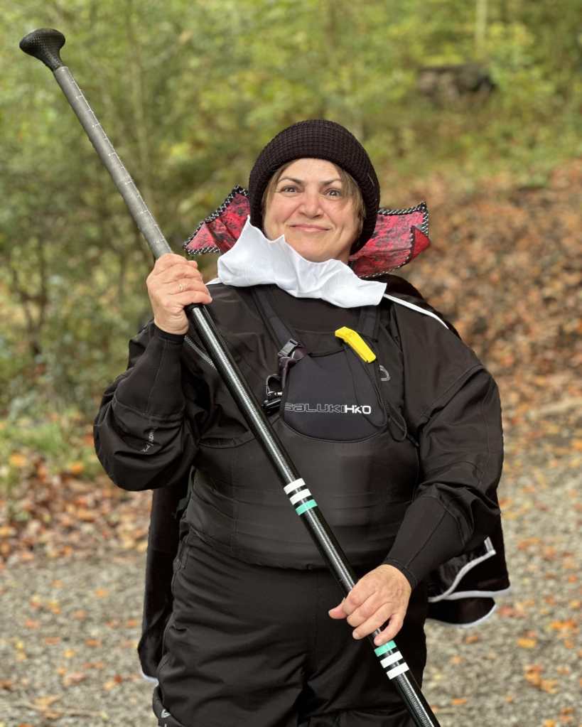 So I do whitewater kayaking, I’ve just started canoeing, and also do whitewater paddle boarding. The paddle boarding I do long distance – up to ten kilometres! I am now training to be a leader and then coach in it – hopefully I’ll have the qualification by the autumn. Throughout the year (even in the winter) you’ll see me up and down the river, and if you were to go to my house, you’d see there are five boats on the rack outside!