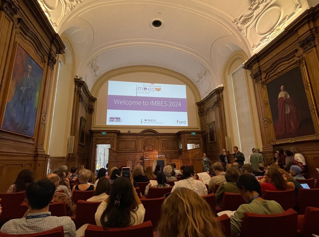 After a morning of inspiring conversations with many friendly Early Career Researchers, the official conference opened in the historic University Hall of KU Leuven. As we sat in the ancient wood-panelled hall, observed by portraits of past academics with their stern faces and prestigious red robes, we were welcomed to this conference by the President of the IMBES, Bert De Smedt. He also warmly welcomed us to the host university of this year’s IMBES conference, KU Leuven, and shared some of the university’s history with us.