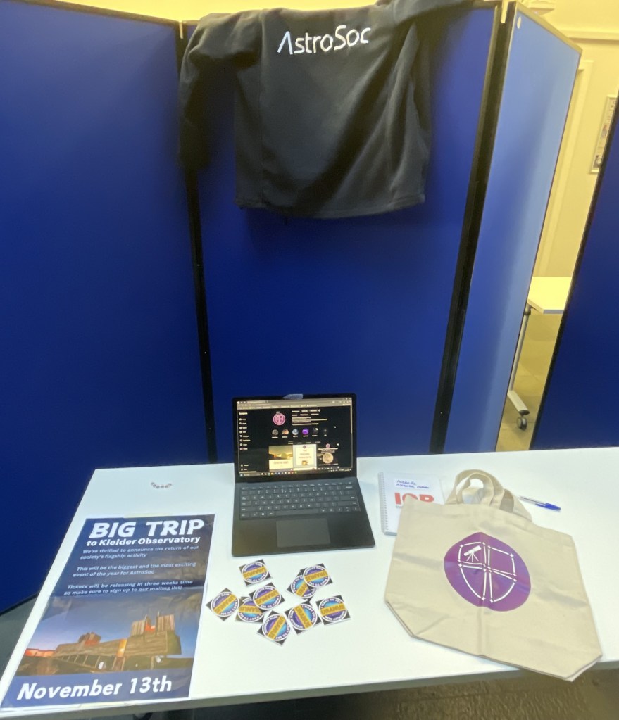 Our stand was adorned with AstroSoc fleeces, stickers and the poster for our most recent trip to Kielder Observatory. It seemed that the number of attendees for our observation sessions is what surprised other societies most – on a good night, we host up to 120 attendees!